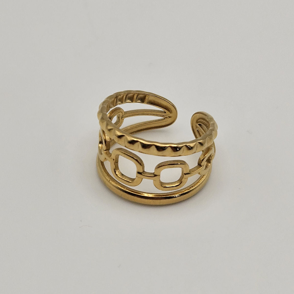 Il design aperto e le linee pulite rendono questo anello versatile e adatto a ogni stile. Regolabile per adattarsi perfettamente.