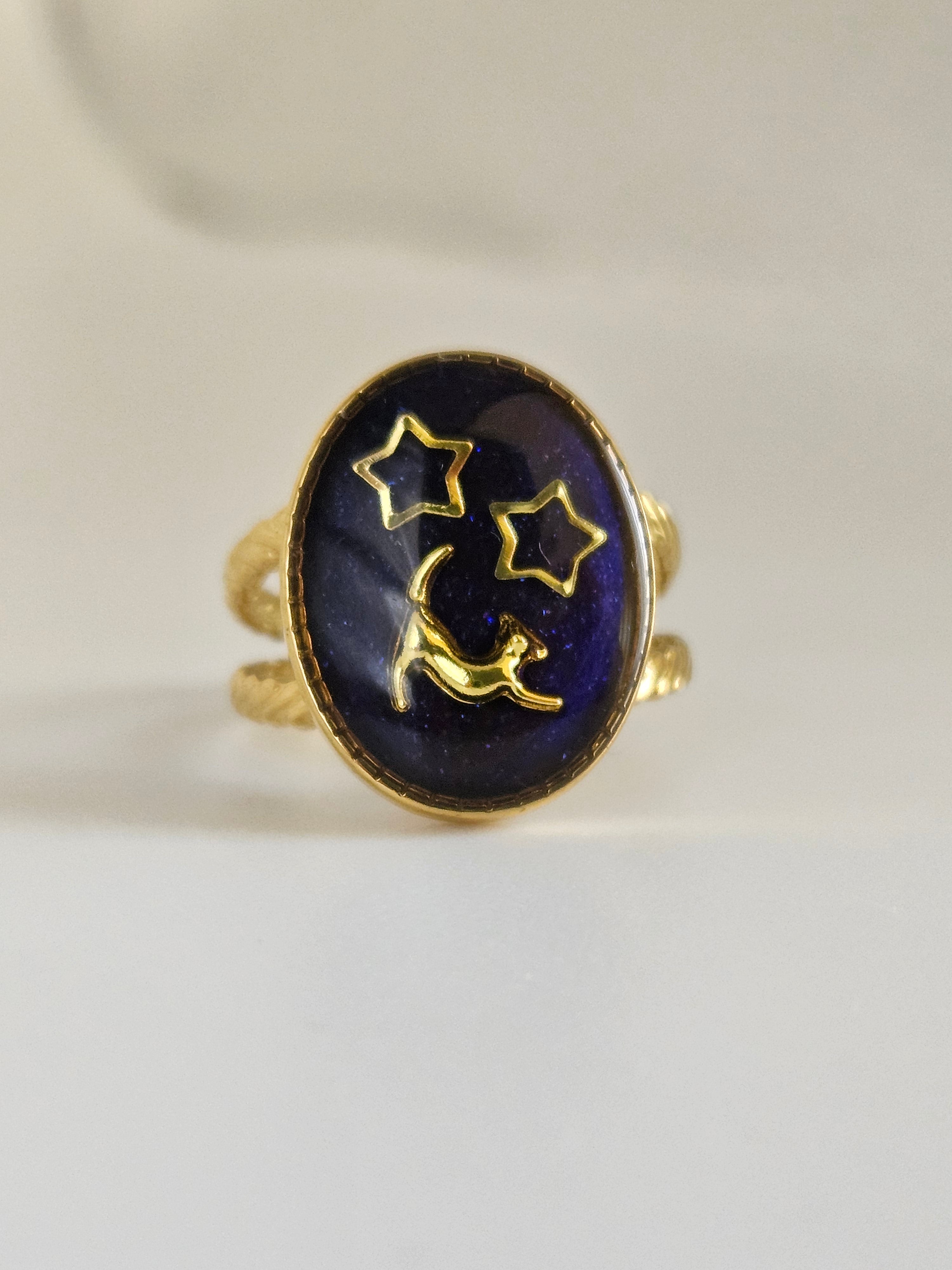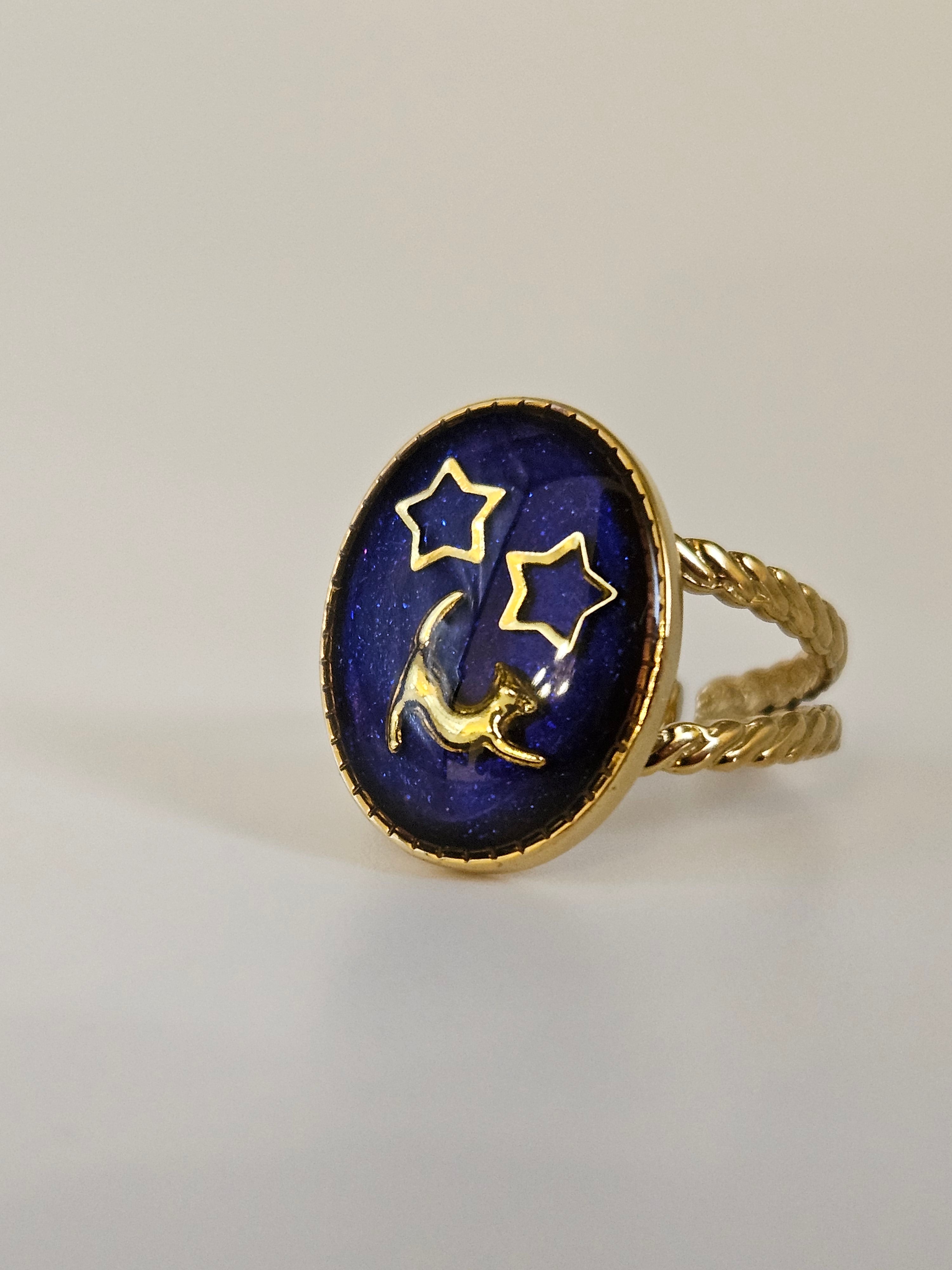 L'anello Micio Bianco nasce dall'incontro tra eleganza del blu notte e la luminosità dei dettagli dorati.