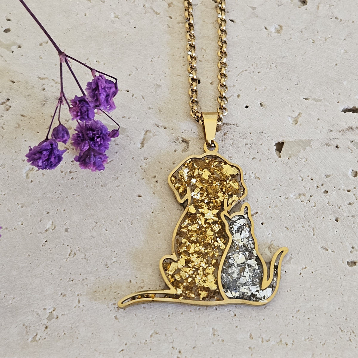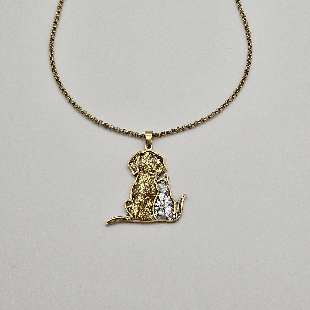 Un ciondolo dolcissimo che celebra il legame speciale tra cane e gatto: due anime diverse, unite dallo stesso amore.